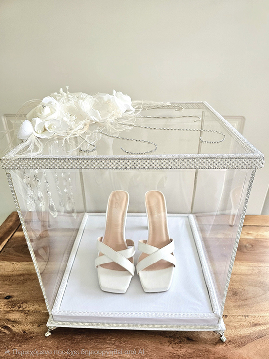 Ενα πολύ όμορφο ζευγάρι παντοφλίτσες που μπορεί να φορέσει η νύφη κατά την προετοιμασία της.