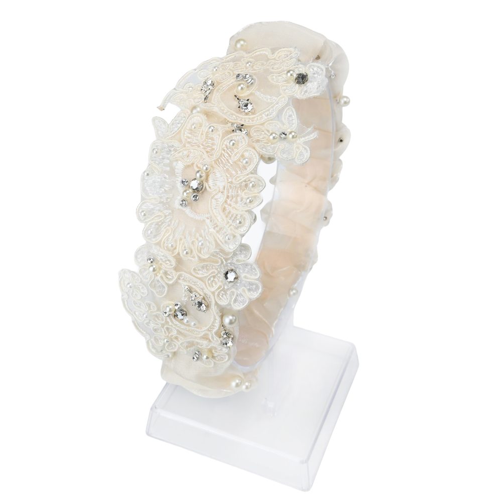 στέκα μαλλιών κορίτσι ιβουάρ δαντελένια λουλουδάκια