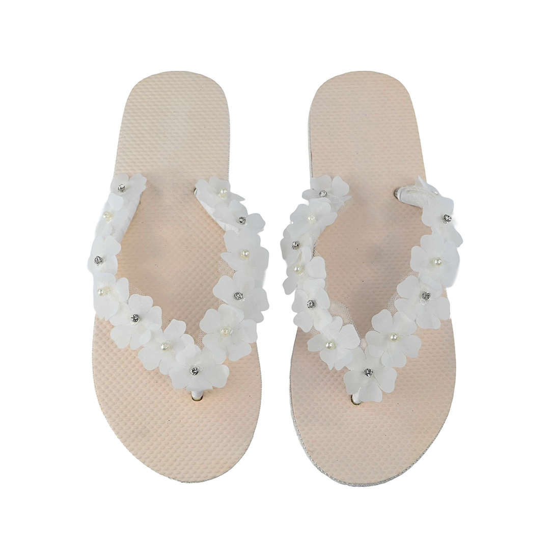 Είναι διακοσμημένες με υφασμάτινα λευκά λουλουδάκια με πέρλες και στρας.